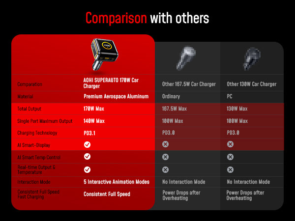 What You Will Get: AOHI SUPERAUTO 170W LED car charger, manual, 18 months warranty, and our everlasting customer service. (All the worldwide shipments, duties, and taxes are included in the prices. They are truly great deals for you to select from.)